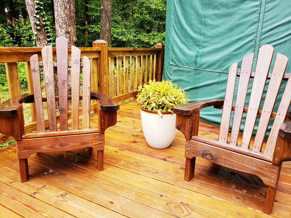- Large deck to sit out on with 2 Adirondack chairs/pic-nic table for 6
